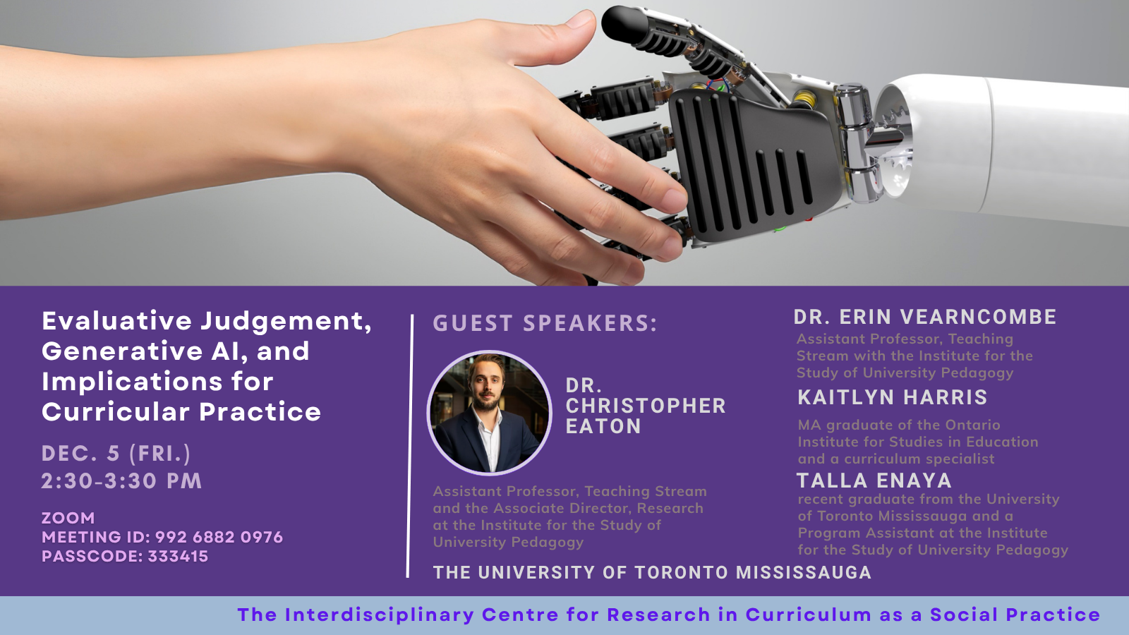 Christopher Eaton is an Assistant Professor, Teaching Stream and the Associate Director, Research at the Institute for the Study of University Pedagogy (University of Toronto Mississauga). His research investigates how generative AI affects the way people build and communicate knowledge.