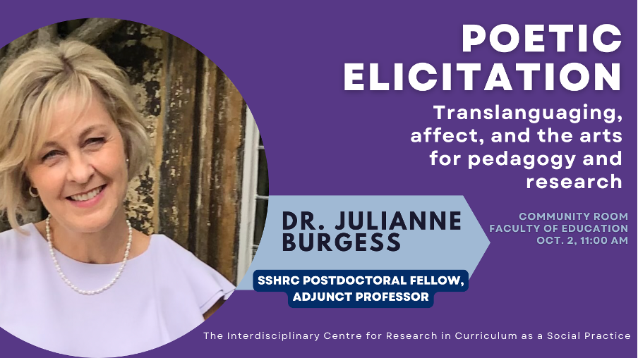 The Interdisciplinary Centre for Research in Curriculum as a Social Practice is pleased to invite you to an upcoming guest lecture: